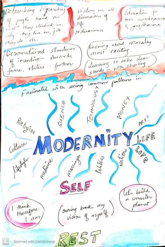 We are in the middle of the four month learning process of Earth Shastra. As I am invited to reflect on the four themes that got opened in the process, I felt called to pick up a pen and some colors and write what has stayed with me - in Oikos (Home), Narratives (Guides of our thinking and action), Education (And Deforestation of our Minds) and Modernity.
